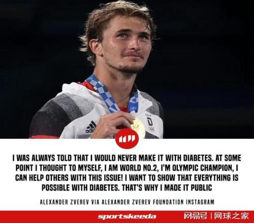 11月18日,兹维列夫在德国参加了一场特殊的表演赛。特殊之处不仅在于这是一场慈善活动,更因为球网两侧的选手——兹维列夫与帕特里克·扎赫拉伊,都是1型糖尿病患者。