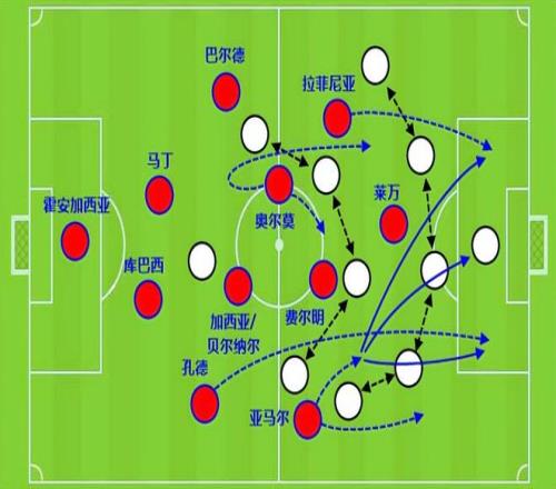 在比赛中,奥尔莫和费尔明都能送直塞球,相比之下,费尔明更直接,喜欢给前锋,奥尔莫则有一定的提前量,能够策动边路加速。